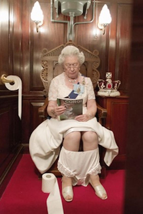 Damned, voici la reine prise en flagrant délit sur le trône. Enfin... sa doublure, seulement. L'artiste anglaise Alison Jackson se fait une spécialité de la pose des sosies dans des situations absurdes et délicieuses.