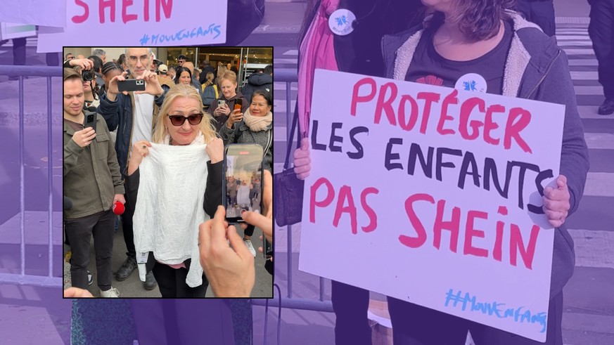 Autour d’elle, les flashs crépitent. Elle devient, malgré elle, le visage du jour, celui de la première acheteuse de la première boutique physique Shein au monde. Elle joue le jeu, montre ses achats: deux pulls blanc cassé. A côté d’elle, une manifestante en profite pour prendre la pose.