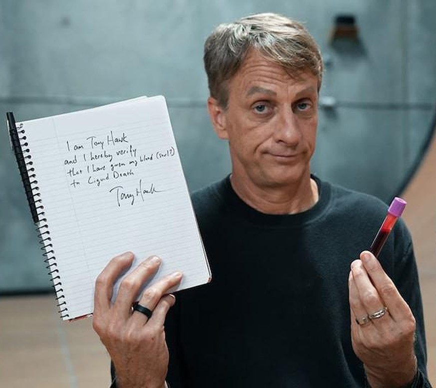 Assistons-nous à une nouvelle tendance? Après les baskets ensanglantées de Lil Nas X, Tony Hawk s'est associé à la société d'eau «Liquid of Death» pour créer un skateboard inédit. Dans une vidéo postée sur sa chaine YouTube mardi, l'entreprise met en scène le sportif dans un skatepark, assis sur une chaise, avec un infirmier à côté de lui qui prélève deux fioles de sang. L'entreprise révèle avoir recouvert 100 planches à roulettes avec le mélange de ces flacons et de la peinture rouge.