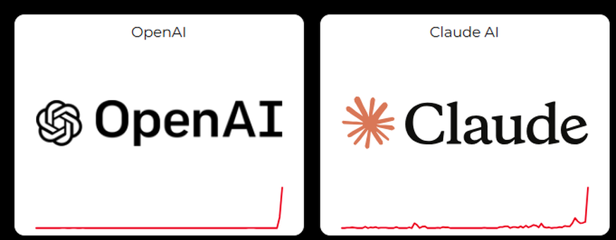ChatGPT et Claude semblent connaître un bug. capture d'écran: downdetector