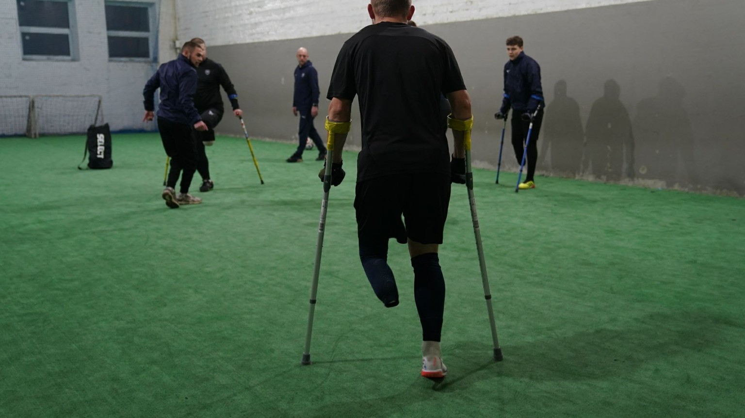 Selon les règles du football pour amputés, il ne pouvait pas jouer dans l’équipe. Il a désormais trouvé sa voie comme entraîneur. Les hommes sont d’âges très différents, la plupart sont des vétérans, et leurs parcours présentent tous le même destin tragique. «Blessé lors d’une mission de combat», ou «victime d’une explosion de mine à la suite d’un minage à distance.»