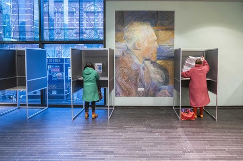 Aux Pays-Bas on vote au musée, à vélo et les urnes sont des poubelles