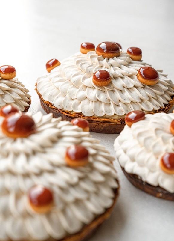 La fleur de vanille, composée de pâte sucrée croustillante, praliné vanille, biscuit aux amandes, confiture de lait vanillée et crème montée à la vanille. Mourir? Oui.image: cédric grolet