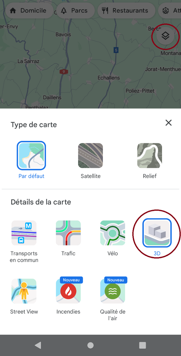 Vous n'avez pas besoin d'outils supplémentaires pour pouvoir utiliser la fonction 3D sur Google Maps. Vous devez simplement vous assurer que l'application sur votre appareil est à jour avec la dernière version de Google Maps. Ensuite, il faut cliquer sur l'icône pour changer le type de carte et choisir 3D.