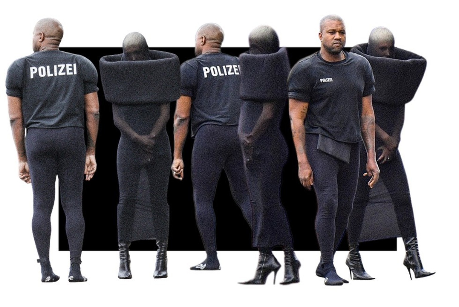 Depuis, au fil de leurs apparitions publiques, Kanye et Censori rivalisent d'ingéniosité pour livrer des tenues de plus en plus déroutantes. «Chaussures-chaussettes», tongs en diamants, visages masqués voire emballés, croix scotchées sur le cul. Des choix absurdes, bizarres, qui défient l’entendement et, surtout, le bon goût. Des fashion statments dans leur plus stricte définition. «Causez toujours, j'en ai rien à foutre.»