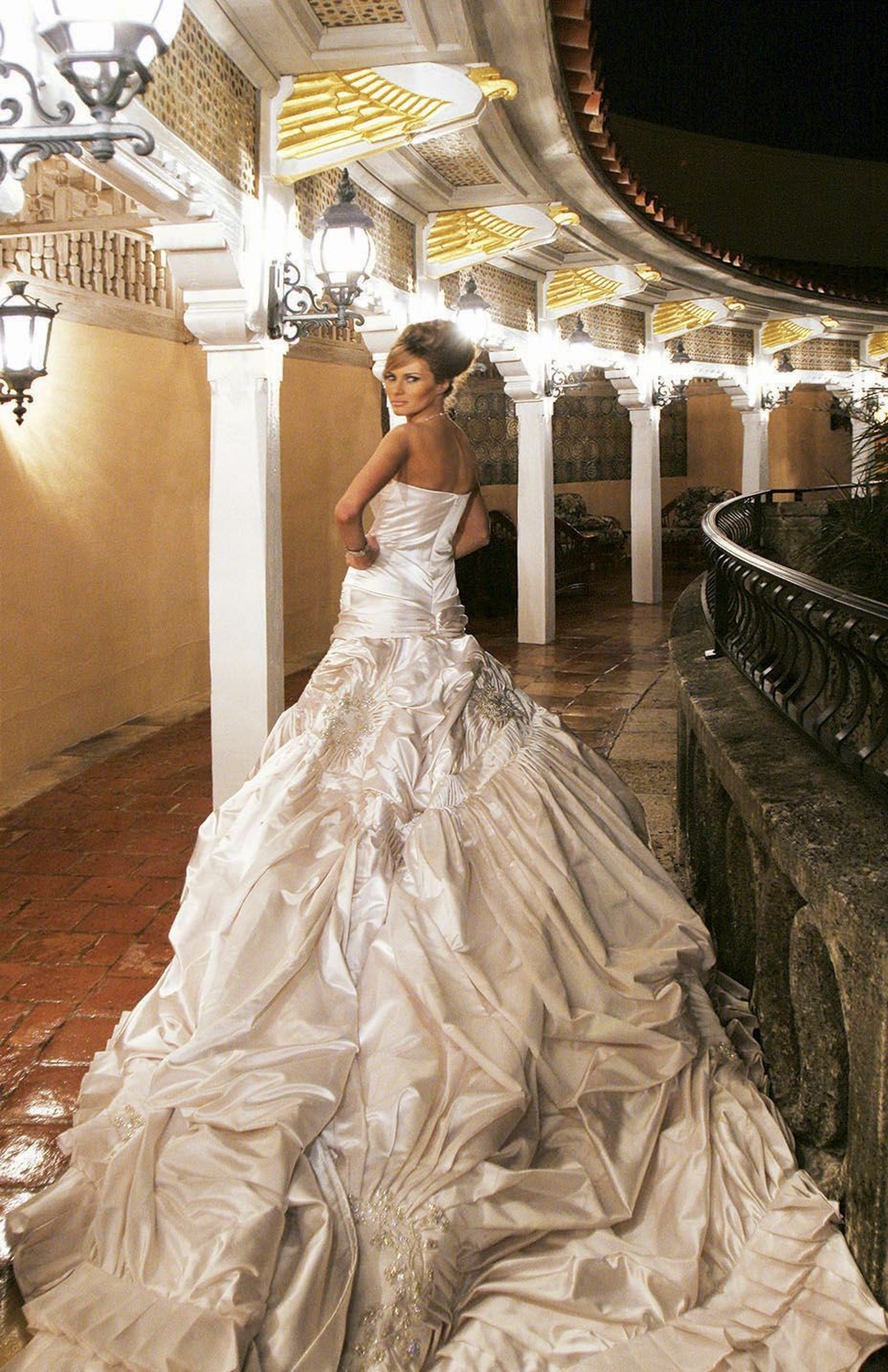 Au moment où le numéro sortait en kiosque, Melania avait déjà endossé cette gargantuesque tenue pour devenir officiellement Madame Donald Trump, lors d'une cérémonie tout aussi clinquante à Mar-a-Lago, où Bill et Hillary Clinton, Rudy Giuliani ou encore Heidi Klum étaient de la partie.