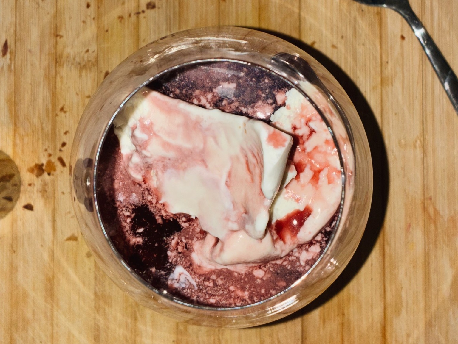 On vous passe la recette détaillée, étant donné qu'il suffit d'associer deux boules de la glace (de votre choix) avec une rasade de vin rouge (également de votre choix). Normalement, même les billes en cuisine ne devraient pas se louper.