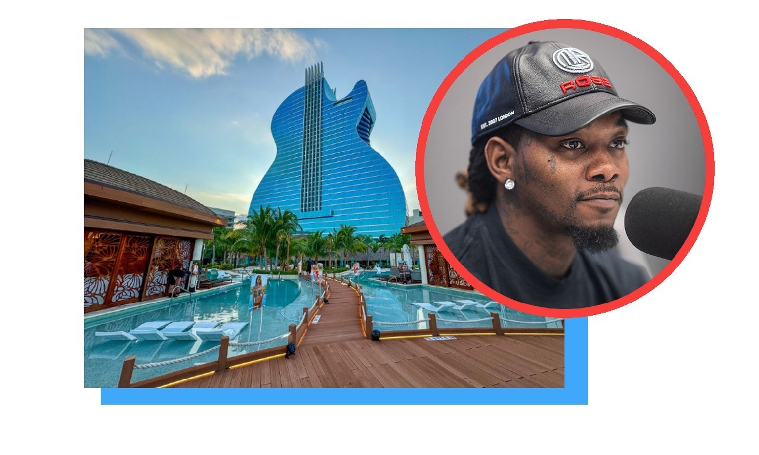 Il est environ 19h10, ce lundi, lorsqu'Offset sort prendre l'air devant le Seminole Hard Rock Hotel & Casino à Hollywood, en Floride.