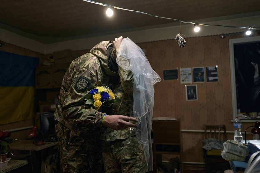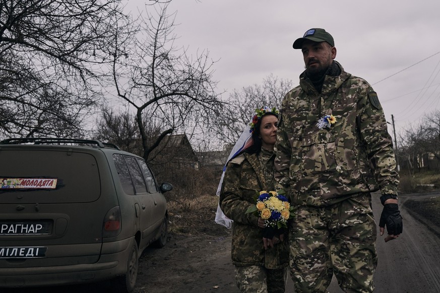 Ce couple de médecins de l'armée ukrainienne s'est dit «oui» ce 24 décembre à Lyman, dans la région de Donestk, à quelques kilomètres de la ligne de front. Exit la robe meringue immaculée, la calèche et les poneys: c'est en treillis et bottes militaires que le couple s'est uni jusqu'à ce que la mort les sépare, escorté par un 4x4 assorti.