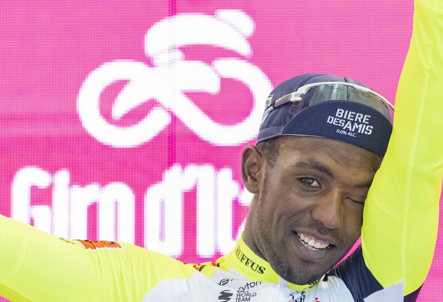 Après avoir écrit (encore) une nouvelle page du cyclisme africain, en devenant, mardi, le premier coureur noir d'Afrique vainqueur d'une étape de grand tour, le jeune érythréen, 22 ans, a malencontreusement reçu dans l'œil le bouchon de la bouteille géante qu'il devait ouvrir sur le podium protocolaire de Jesi.