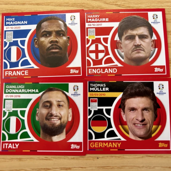 L'album Topps de l'Euro 2024 comporte des absents de marque. L'attaquant vedette des Bleus Kylian Mbappé ne dispose pas de sa vignette. Les Allemands Manuel Neuer, Toni Kroos et Florian Wirtz sont également absents. La raison? Le nouvel éditeur n'a pas réussi à s'assurer les droits d'image de ces joueurs. Et pour qu'il y ait suffisamment d'images de la Mannschaft à coller, trois légendes ont été ajoutées sur la page de l'équipe allemande: Oliver Kahn, Bastian Schweinsteiger et Lothar Matthäus.