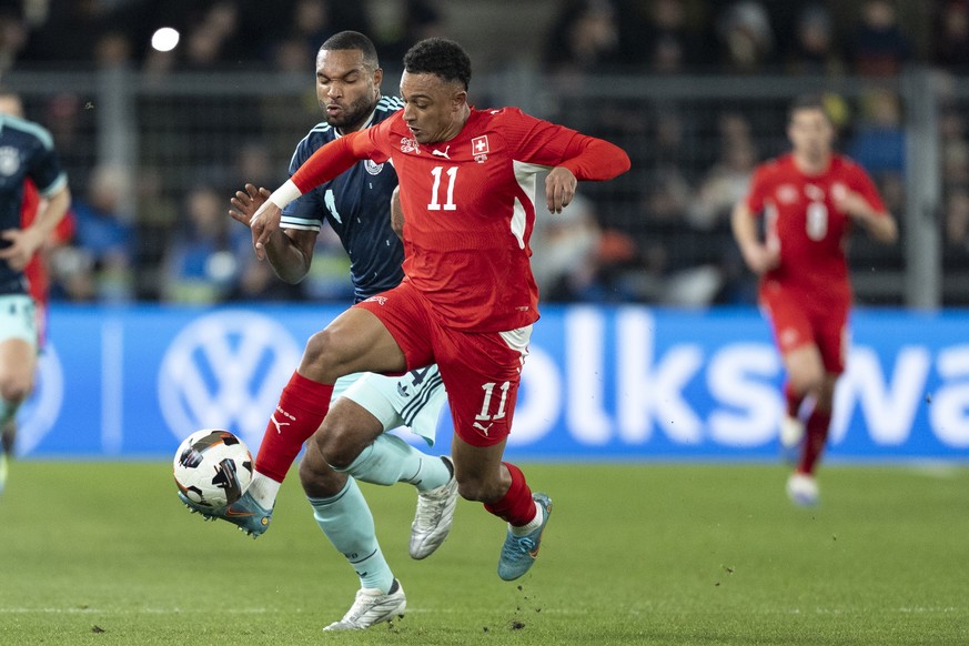 Dan Ndoye a été le premier à faire trembler les filets, lui qui avait marqué son premier but sous le maillot suisse contre l'Allemagne déjà, lors de l'Euro 2024. Suite à une récupération de Remo Freuler, le Vaudois a profité de l'abandon de poste de Joshua Kimmich sur le flanc gauche pour entrer dans la surface et tromper Oliver Baumann en force, à l'aide du poteau (17e).