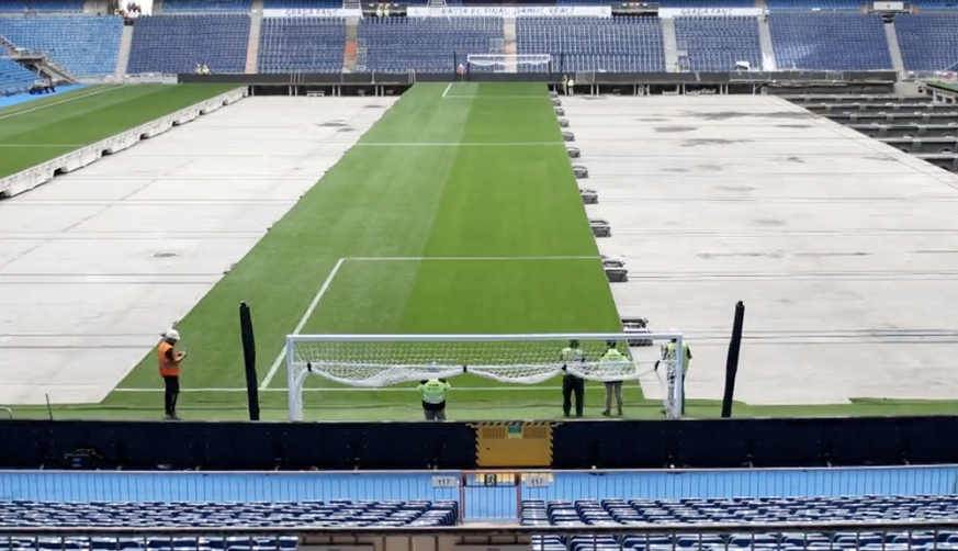 Les amateurs de montres et de mécanismes complexes ne devraient pas rester insensibles à la pelouse du nouveau stade Santiago Bernabeu, actionnée par des mouvements extraordinairement précis. Posé sur un plateau amovible, le terrain peut être disparaître bande par bande, en quelques minutes. Admirez le travail 👇: