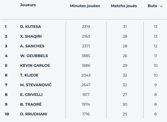 Kutesa et Shaqiri se disputent toujours le titre de roi des buteurs. Il reste six matchs (en comptant celui de lundi) aux deux joueurs pour se détacher en tête. A noter que contrairement à Shaqiri, Kutesa est remplaçant ce lundi.