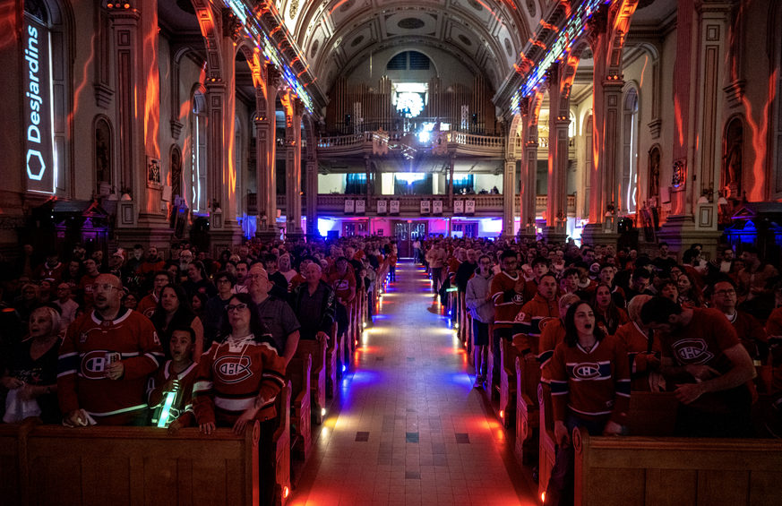 Pour cela, un écran géant avait été suspendu dans la cathédrale Saint-Jean-L'Evangéliste, dans la ville québécoise de Saint-Jean-sur-Richelieu. Il a fallu des mois pour préparer l'édifice religieux du XIXe siècle à recevoir les supporters de l'équipe la plus titrée de la NHL, les Canadiens de Montréal.