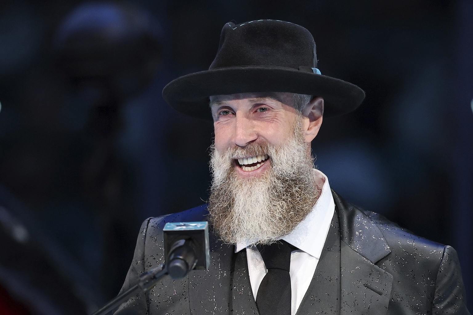 Thornton a assisté à la cérémonie en compagnie de sa femme, la Suissesse Tabea, de leurs enfants River et Ayla, et de ses parents Wayne et Mary. Vêtu d'un costume sombre, d'un chapeau et arborant sa légendaire barbe, l'ex-hockeyeur de 45 ans ressemblait plus à un pèlerin américain qu'à un ancien sportif de haut niveau.