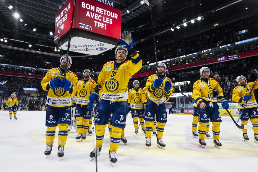 Le HC Davos a remporté l'acte deux de la finale, lundi à Fribourg.Image: KEYSTONE