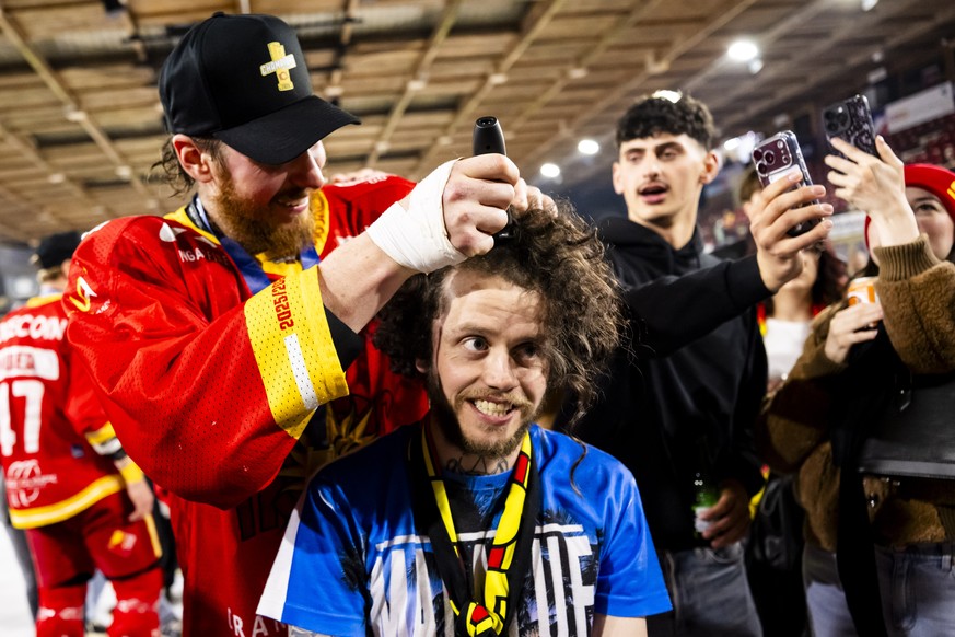 Au 183e jour de son défi personnel, soit après six mois de pousse effrénée, le moment tant attendu est enfin arrivé: Sierre a triomphé en Swiss League, ce qui a conduit le défenseur Tyler Higgins à sortir la tondeuse pour lui raser les cheveux de près lors des célébrations du titre.