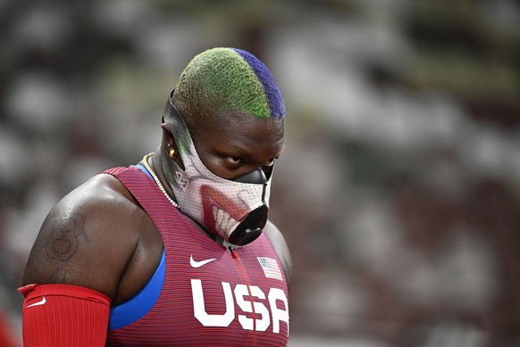 Surprise, jeudi lors des qualifications du lancer de poids, lorsqu'une athlète est apparue le visage caché derrière un masque noir et des lunettes de soleil.