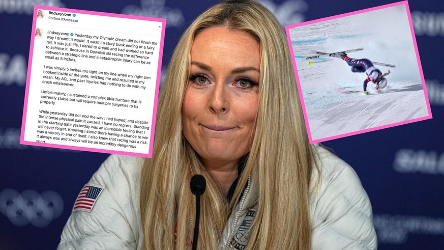 Lors de son accident à Cortina, elle a subi une fracture complexe du tibia qui nécessitera plusieurs interventions chirurgicales pour être traitée correctement. Malgré la douleur et bien qu'elle ait espéré une issue différente, Lindsey Vonn tente de philosopher: