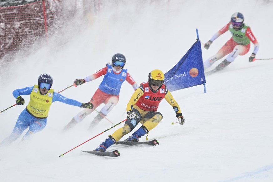 epa12856485 Italy's Jole Galli #15 (yellow), Switzerland's Talina Gantenbein #10 (red).Germany's Daniela Maier #2 (red) and Switzerland's Fanny Smith #7 (green) during the women&#0 ...