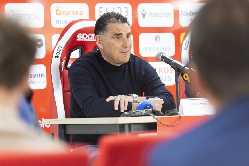 Didier Tholot, entraineur du FC Sion, parle lors d'une conference de presse du FC Sion ce mardi 21 avril 2026 au stade de Tourbillon a Sion. (KEYSTONE/Cyril Zingaro)