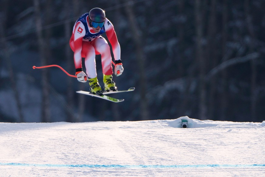 Le Suisse Stefan Rogentin a fait mieux que Niels Hintermann lors du 2e entraînement, alors que tous deux sont en lice pour la quatrième et dernière place au départ de la descente olympique.Image: KEYSTONE/MICHAEL BUHOLZER