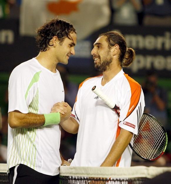 Marcos Baghdatis (à droite) avait réussi à prendre un set à Roger Federer lors de la finale l'Open d'Australie 2006. Image: AP