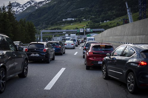 Bouchon de 10 km devant le portail sud du tunnel du Gothard