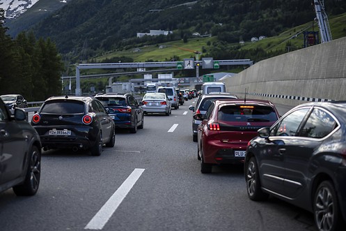 Bouchon de 10 km devant le portail sud du tunnel du Gothard