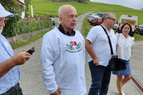 Ueli Maurer s'affiche avec le t-shirt d'un groupe anti-mesures Covid-19
