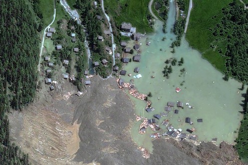 Jusqu'à 100 mètres de haut d'éboulis à Blatten