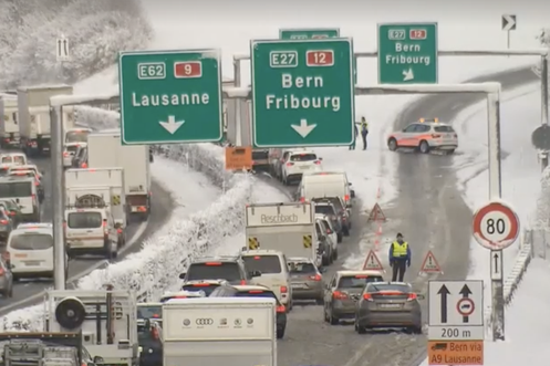 Neige en Suisse: l'A12 fermée entre Vevey et Châtel-St-Denis