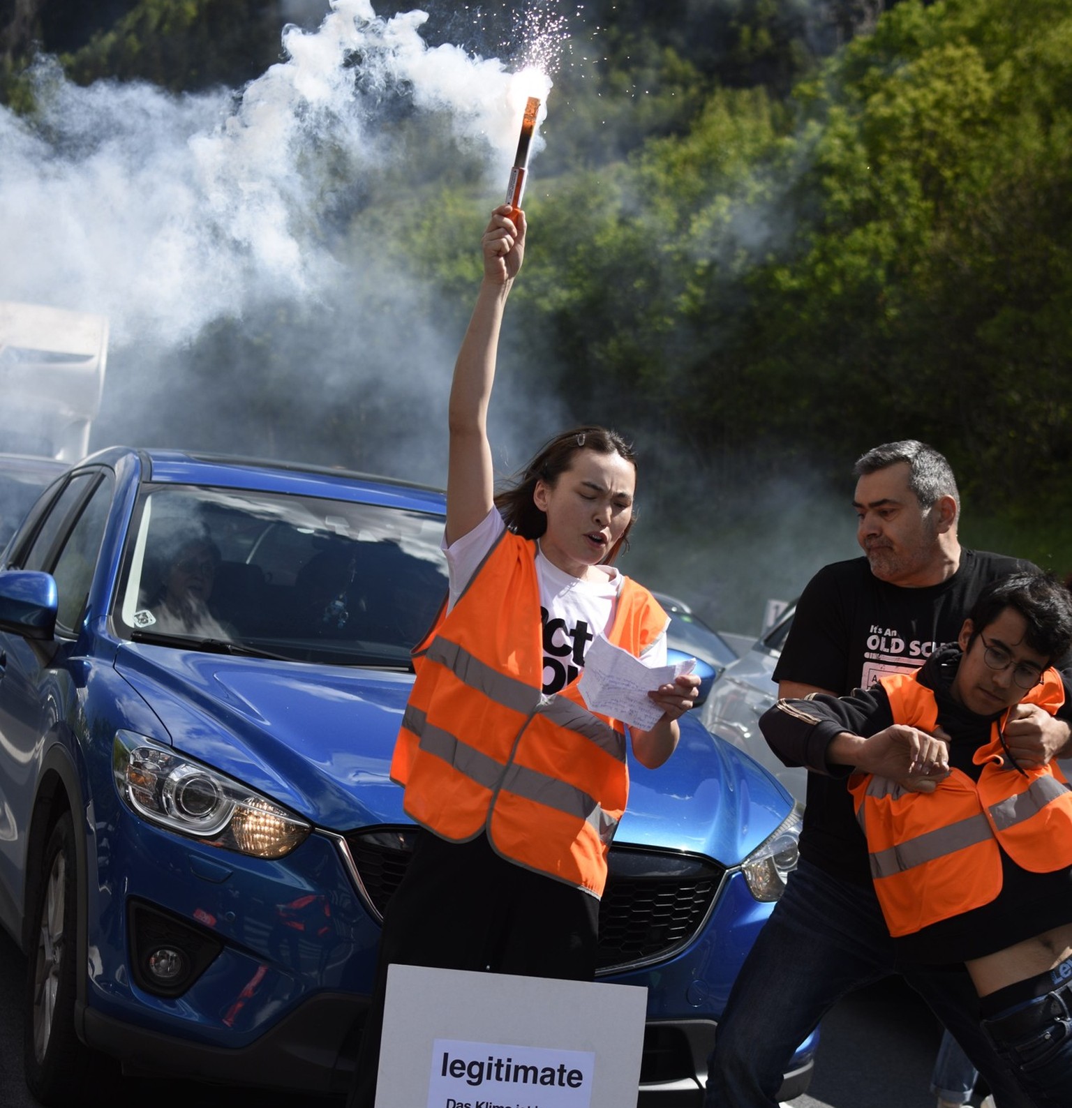 Le samedi de Pentecôte, un énorme embouteillage s'est formé devant l'entrée sud du tunnel du Gothard, où la file a atteint une longueur de 22 kilomètres. C'est dans ce contexte que s'est déroulée une action du collectif climatique Act Now!. Des activistes se sont assis sur la chaussée, avant d'être évacués par la police.