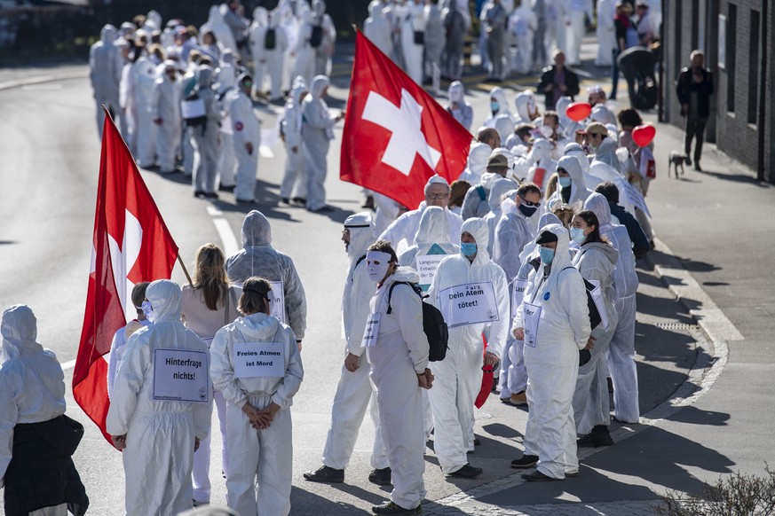 Le message de Stiller Protest utilise plutôt les ressorts de la caricature. L’association a décidé de montrer ce qu’elle considère comme absurde dans les décisions du Conseil fédéral. Ses membres, qui ont accepté de répondre aux questions d'ArcInfo, défilent donc en silence, avec masques et combinaisons de protection intégrale, pour dénoncer les choix du Conseil fédéral qu’ils jugent extrêmes.