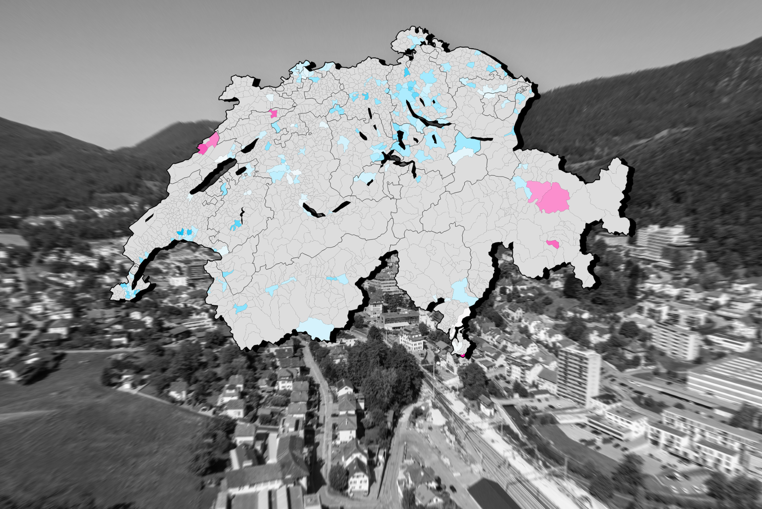 Si la tendance globale est à la hausse, on recense tout de même quelques communes ayant perdu des habitants ces dix dernières années. Il s'agit d'une exception, car seules 8 villes sur 180 ont vu leur population rétrécir entre 2014 et 2024. Elles se situent principalement dans l'arc jurassien, au Tessin et dans les Grisons.