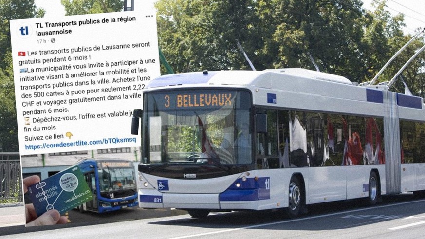 «Les transports publics lausannois seront gratuits pendant 6 mois!» promet une offre diffusée sur Facebook par un compte sponsorisé qui reprend le nom et le logo – bleu sur fond blanc – des TL. Dans la publication, les internautes peuvent également lire: