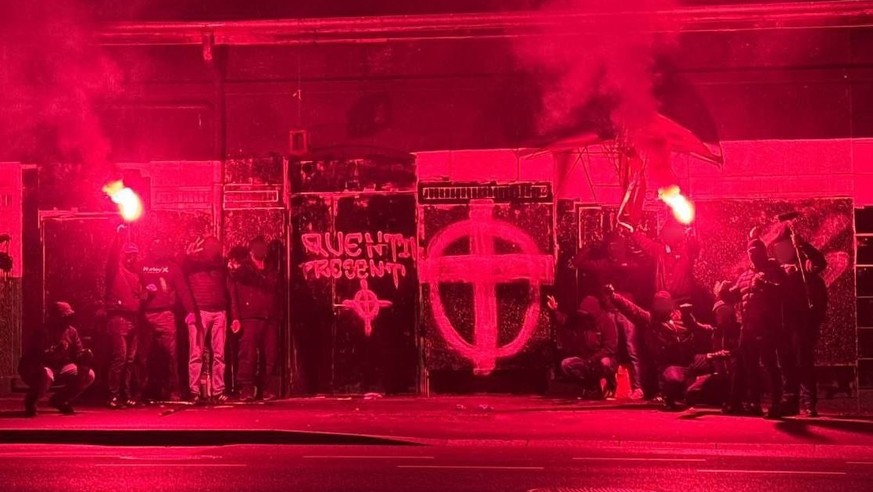 Sur l'une d'elles, publiée sur la page «Active Club Romandia», plusieurs personnes cagoulées brandissent des fumigènes autour de l'inscription «Quentin Présent», hommage au militant nationaliste Quentin Deranque dont la mort embrase la France ces jours.