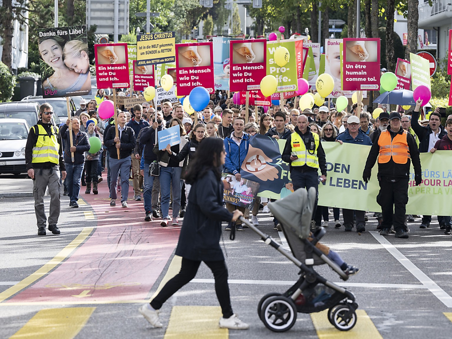 Des opposants à l'avortement ont défilé samedi lors d'une manifestation à Zurich-Oerlikon. La police a empêché toute rencontre avec des contre-manifestants, ce qui a légèrement retardé le départ de la «marche pour la vie».