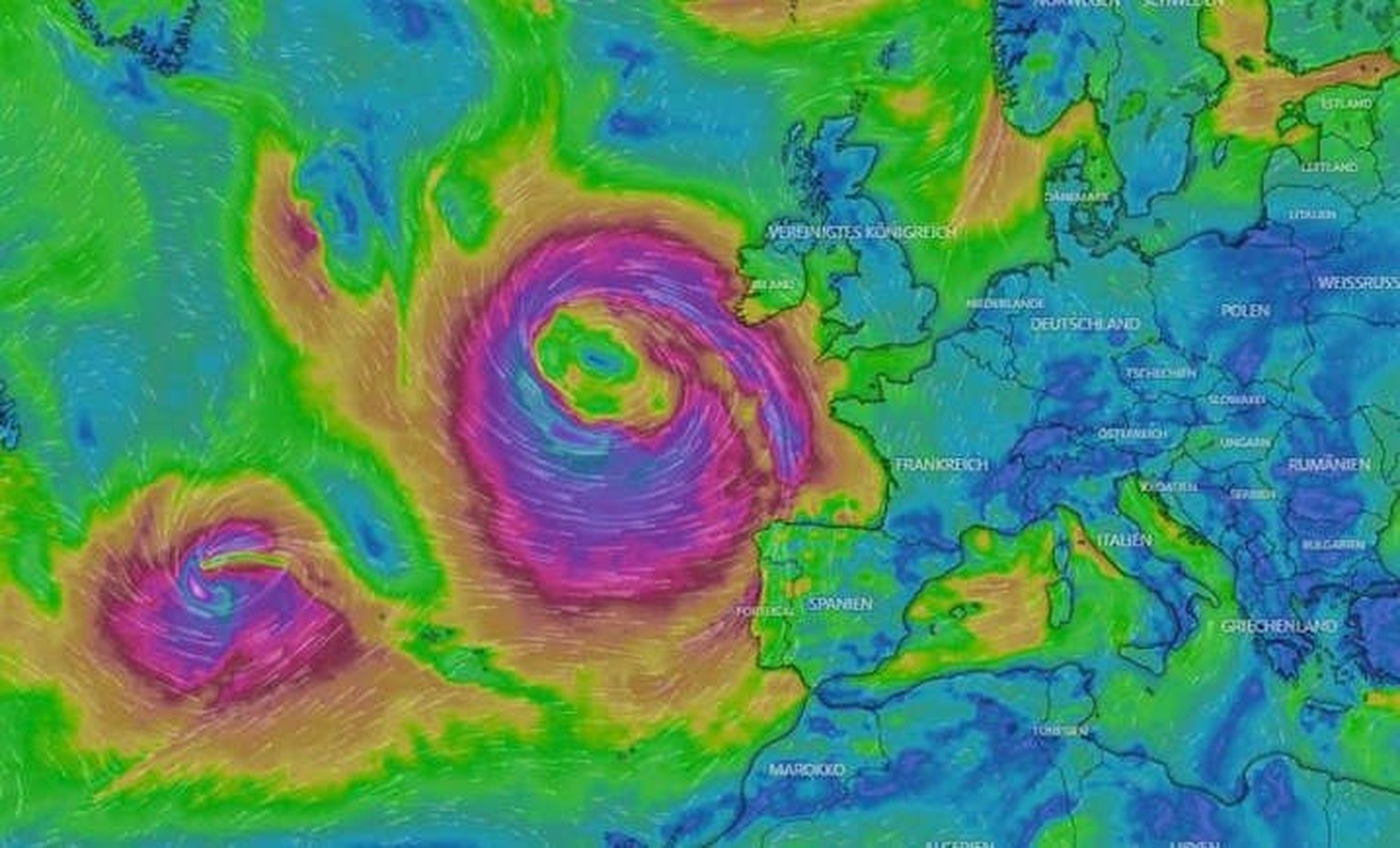 On s'attend tout d'abord à ce que la tempête touche les îles Britanniques dans la nuit de jeudi à vendredi, avant de poursuivre sa route vers la mer du Nord. Les services météorologiques britanniques mettent en garde contre de fortes pluies et des rafales de vent pouvant atteindre 210 km/h.