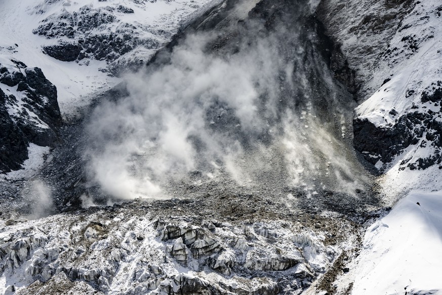 Selon les estimations, plusieurs centaines de milliers de mètres cubes de glacier risquent de s'effondrer. Mais jusqu'à présent, il n'y a pas eu de rupture du glacier, a précisé Jeitziner.