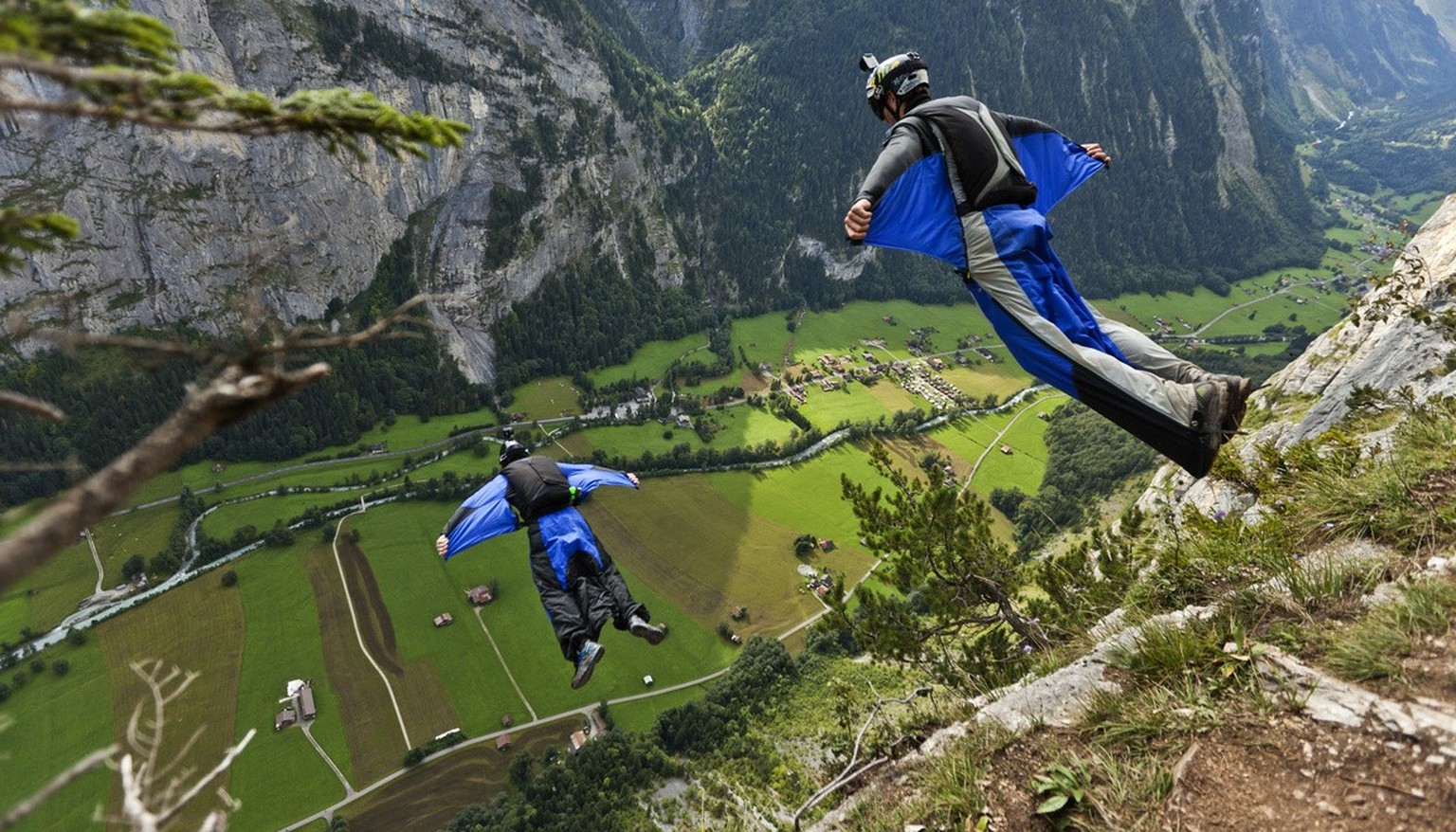 Vérification de l'équipement. Un, deux, trois. Et c'est parti! C'est à peu près ce qu'il se passe avant qu'un base-jumper ne se lance dans le vide. Il n'y aurait qu'environ 2000 courageux dans le monde à pratiquer ce sport. Nombre d'entre eux ont déjà été attirés par la vallée de Lauterbrunnen, dans le canton de Berne. Avec ses falaises pouvant atteindre 400 mètres de haut, son panorama à couper le souffle et ses plus de 10 sites de saut, la région est considérée comme la Mecque des base-jumpers.
