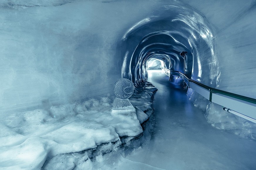 Ici, on ne va pas sur, mais dans le glacier du Petit Cervin. Un courant glaciaire éponyme s'écoule entre la station supérieure du plus haut téléphérique d'Europe (3883 m) et le Breithorn. Dans la télécabine, la vue est déjà à couper le souffle. Le site a d'ailleurs a été recommandé il y a quelques semaines par la bible du voyage, le Lonely Planet.