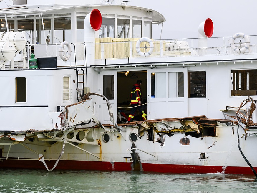 La Compagnie générale de navigation sur le lac Léman (CGN) a donné jeudi des précisions sur les dégâts au bateau construit en 1920. La coque est «particulièrement touchée sur toute sa longueur», note-t-elle. L'arrière du vaisseau est également endommagé, en particulier le gouvernail et la structure qui l'entoure.