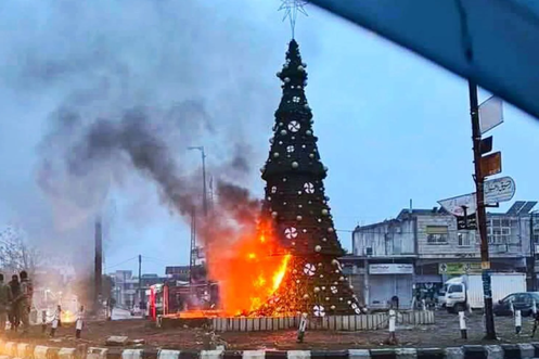 Un sapin de Noël incendié suscite l'ire des chrétiens en Syrie