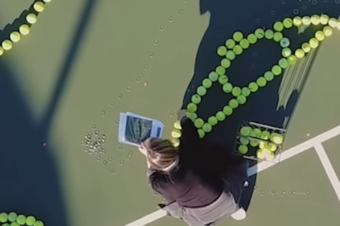 Elle dessine Federer avec des balles de tennis et c'est bluffant