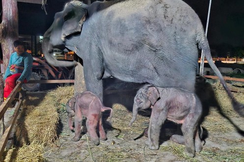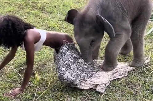 Quel coquin! Ce bébé éléphant arrache la jupe d'un mannequin