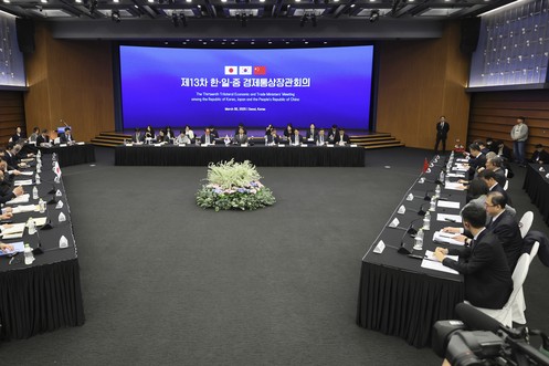 Face à l'offensive douanière américaine, Tokyo, Séoul et Pékin resserrent leurs liens