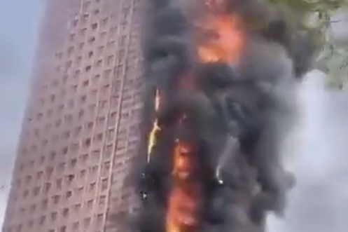 Un violent incendie ravage un gratte-ciel de 218 mètres en Chine