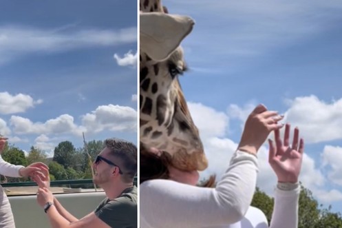 Coup de boule! Une girafe gâche une demande en mariage